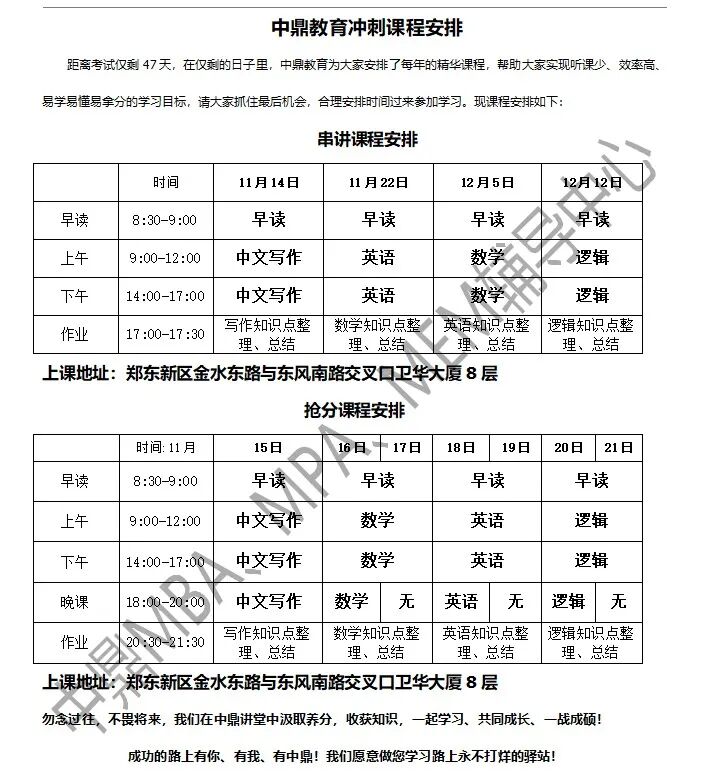 同时,为了帮助同学们复习巩固,我们特意把抢分密训营与冲刺串讲安排在一起