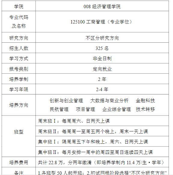 1、创新创业管理 2、大数据与商业分析 3、金融科技 4、民航管理 5、项目管理 6、企业综合管理 7、技术转移