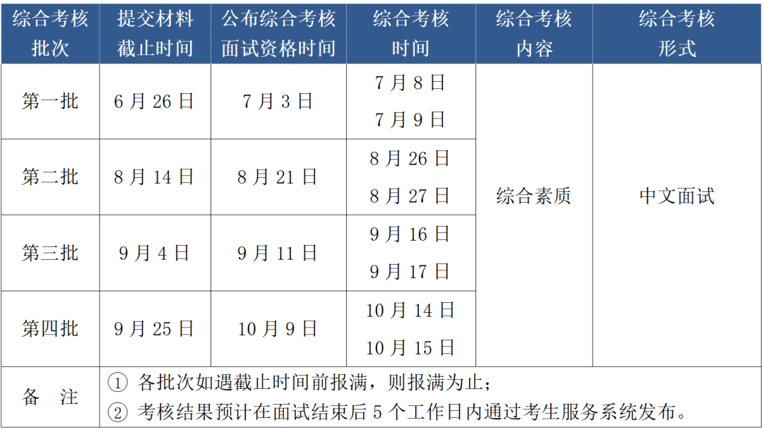 综合考核共分四个批次,考生仅可选择其中一个批次进行申请。