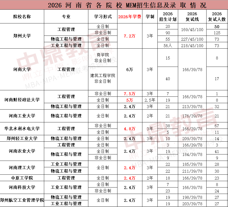 今天给大家整理了河南MEM院校的相关信息,以便各位同学在择校过程中有所参考。需要注意的是:自2027考研起,工业工程与管理、物流工程与管理两个专业不再允许应届生报考,报考需满足本科毕业3年,专科毕业5年的条件。省流版郑州大学【官网链接】:h