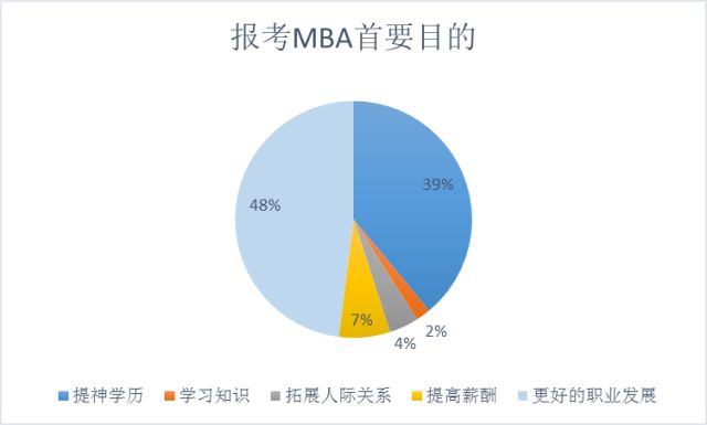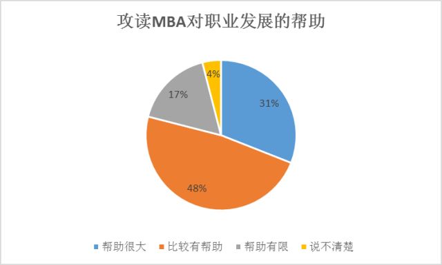 调查数据显示,54%的被调查者对MBA教育比较满意,28%的被调查者非常满意,仅有7%的被调查者认为攻读MBA低于其预期。 2 近八成学员认为攻读MBA对职业发展有所帮助 调查显示,31%的MBA学员认为攻读MBA对其职业发展帮助很大,48%的学员认为攻读MBA对其职业发展比较有帮助,仅有17%的学员认为对其帮助有限。 3 报考MBA首要目的是什么? 调查中,有48%的MBA报考者为了获得更好的职业发展而选择攻读MBA,另有39%的报考者为了提升学历而选择攻读MBA,也有少数报考者为了改善薪资待遇、拓展人际关系或学习知识而选择报考MBA。不过,抱着学习知识的初衷选择攻读MBA的人群仅占总调查人数的2%。获得更好的职业发展和提升学历是大多数报考者选择攻读MBA的首要目的。 4 与入读前相比,薪酬待遇有何变化? 如图,所有被调查人群中,有37%的人在攻读MBA后薪酬涨幅在5%~30%之间,22%的人薪酬涨幅在30%~50%之间,同时也有一定比例的人认为攻读MBA后薪酬几乎没有增长,这部分人数占比达24%。也有一小部分人在攻读MBA后薪酬涨幅在100%以上,占比达11%;涨幅在50%~100%之间的人数较少,占比4%;另有2%的人认为攻读MBA后薪酬不但没有增长反而下降了,不过这部分人数相对较少。 5 MBA学员对师资队伍、学费的满意程度。 MBA学员关心的教学问题上,院校师资学生满意度较高。关于MBA的学费一直以来备受争议,调查显示,只有四成MBA学员对学费感到满意,认为一般和不满意的学员则占到六成。 2月23日(周六)10:00 年后首场提升规划! 遇到职业瓶颈如何解决? MBA成绩如何查询?如何准备MBA复试? 现场详细介绍A、B区院校调剂情况! 名额有限,早到早得! 0371-55692777 花园路农科路金水万达中心2918室 中鼎MBA教育特色: 十七年资历,汇聚独特的“全程一线师资现场面授+独有的密训课程+独有的必考点专项特训课程+360无忧补课系统—网络课程+手机APP随时学习+人性化服务+一对一指导+复试录取绿色通道+MBA学员俱乐部资源共享”的培训特色,缔造郑州MBA联考辅导卓越品牌。 更多资讯请查看 MBA报考过程中需要务必了解的内容、历年学员评价、往期学习课堂、我考研的那些事儿-时隔25年重返校园、念念不忘 必有回响-记MBA备考之路、专科毕业20年,43天搞定184分完成985MBA梦想!综合考场应对技巧、中鼎MBA教育的名师串讲押题班、为什么要考MBA?MBA的意义在哪里?郑州大学MEM复习指导、 2015-2018年研究生报考分析、郑州大学MBA分数线是多少、郑大MBA学费是多少 郑州中鼎MBA、MPA、MPAcc联考辅导培训中心 花园路万达校区:郑州金水万达中心2918室(地铁2号线东风路站C出口) 财大校区:河南财大文北校区十号楼一楼阶梯教室 河南MBA/MPA备考家园群号:12706628 郑州大学MBA备考群:9979381 河南财大MBA、MPA备考群:125205295 咨询热线:0371-55692777 18737125877赵兵老师 18737130977吴老师 18538010977张老师 17637182225白老师
